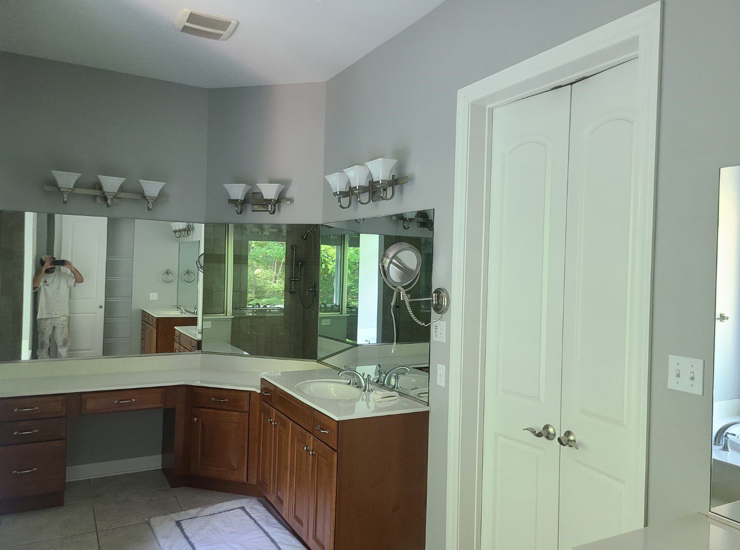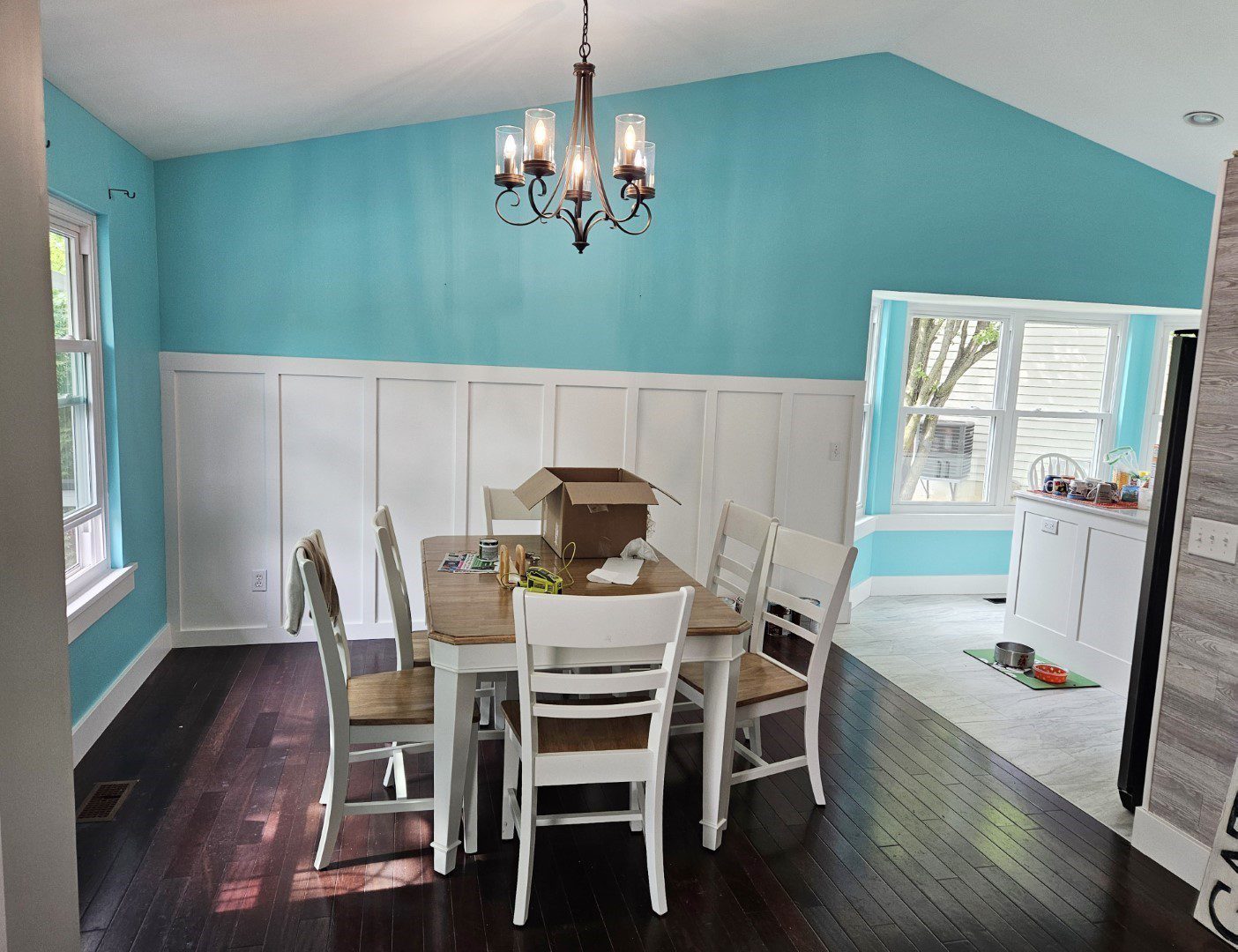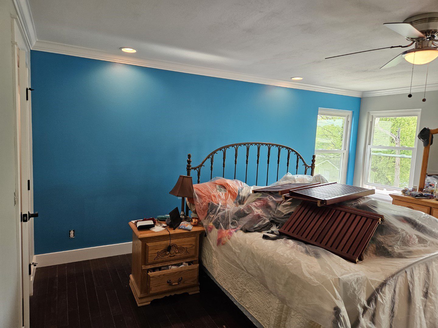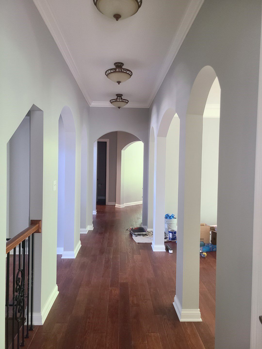The gallery includes completed rooms and exteriors alongside in-progress photos that highlight surface preparation, clean cut-in work, and careful protection of surrounding areas. Together, these images reflect a consistent, professional approach from start to finish.